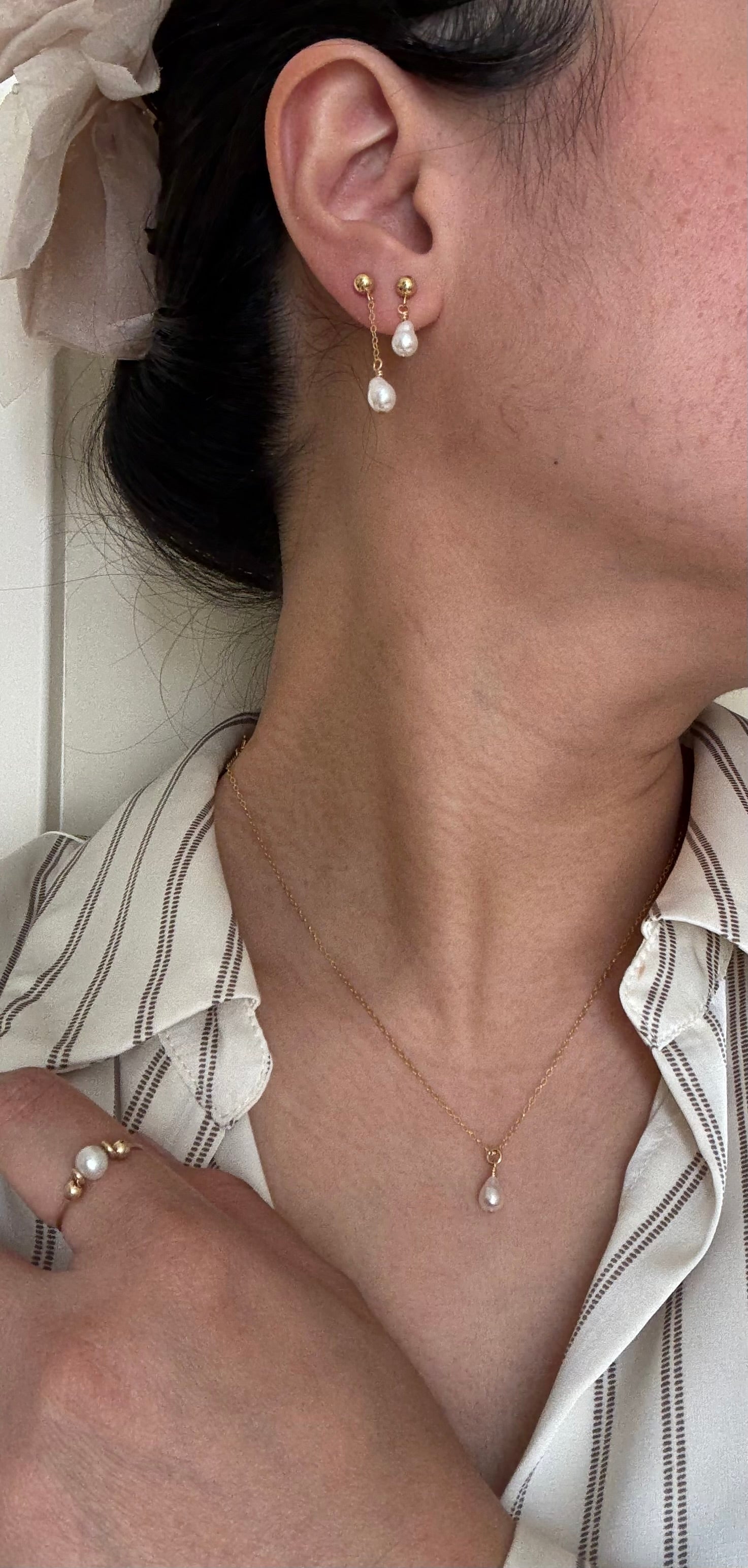 Elevate your look with this teardrop-shaped pearl pendant on a delicate 14k gold-filled chain. Timeless and versatile, it’s perfect for everyday wear, bringing a refined touch to any outfit.